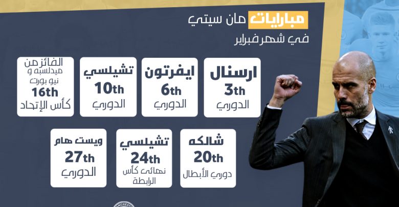 ماذا ينتظر مانشستر سيتى فى فبراير 2019 ” قائمة مباريات الشهر بالكامل
